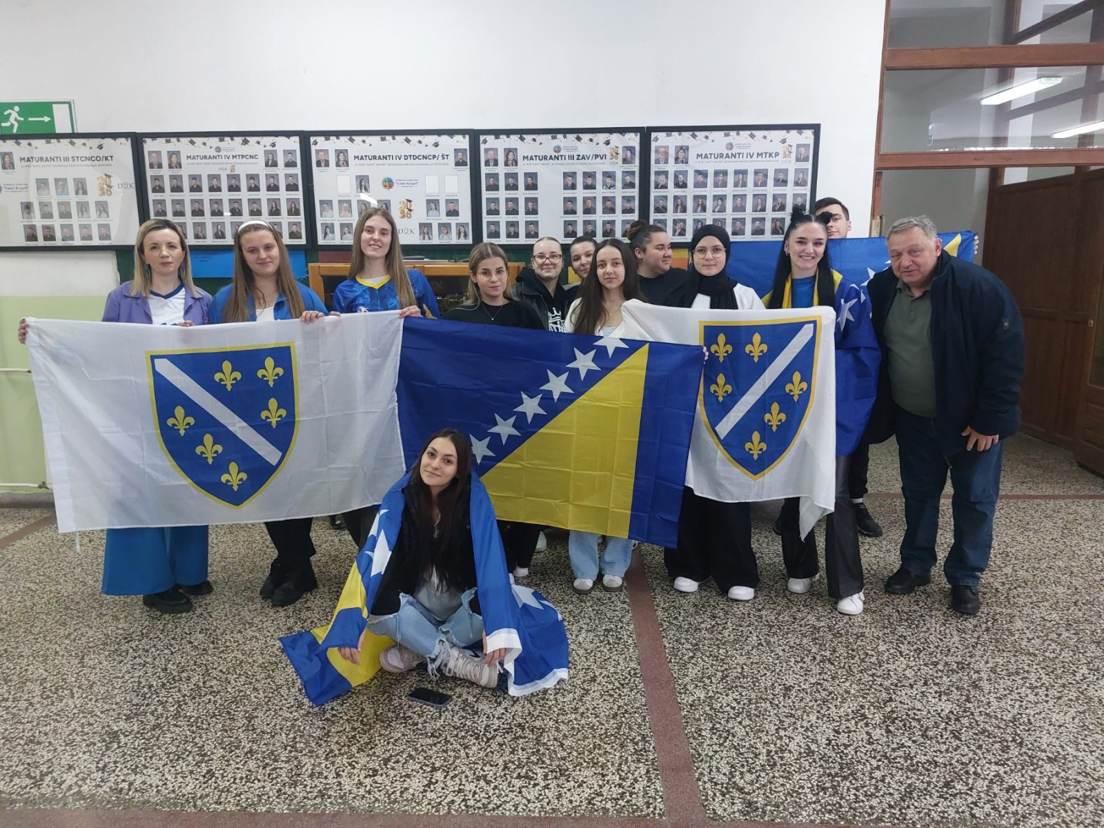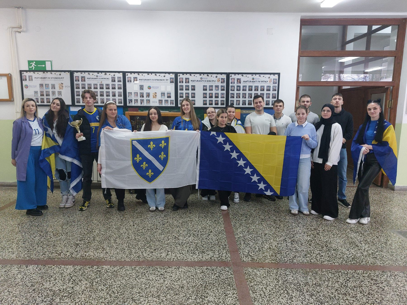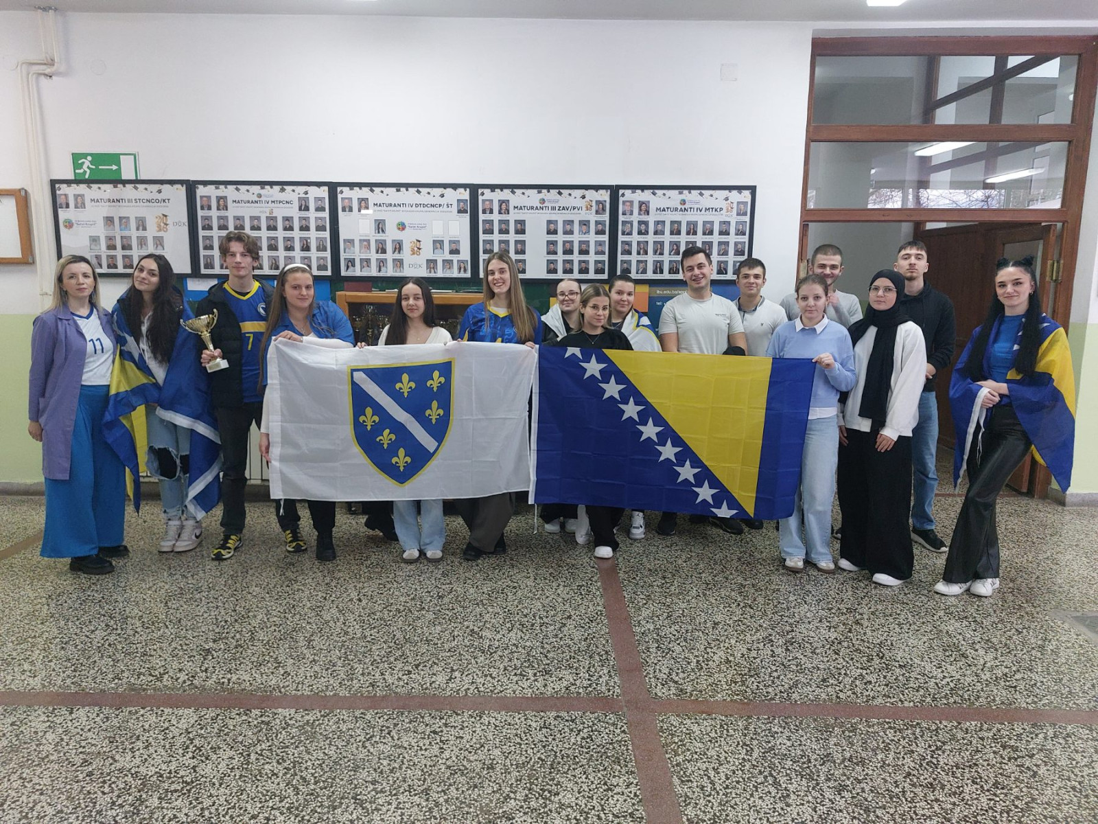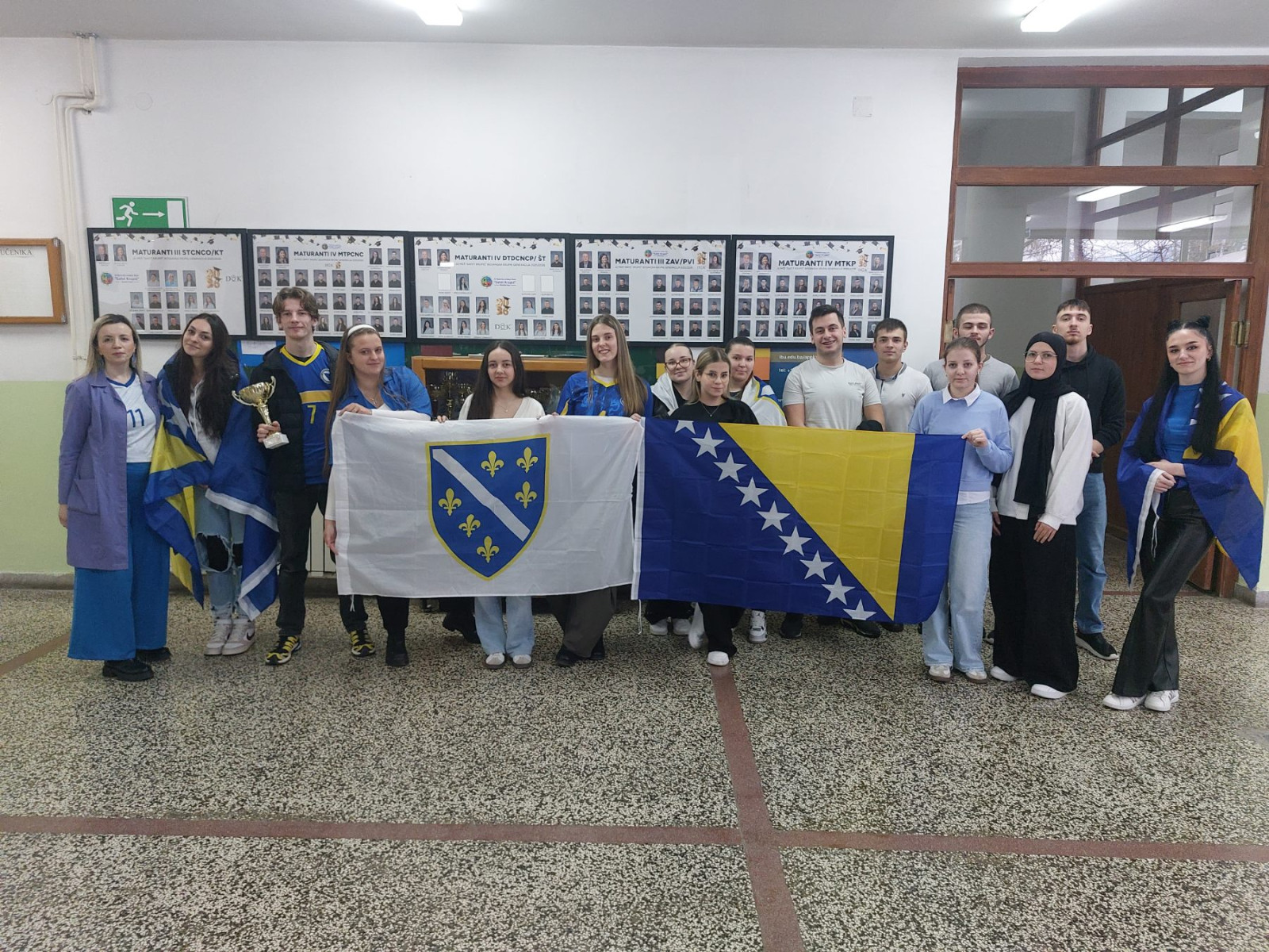 Profesorica engleskog jezika, Azra Hodžić, zajedno sa svojim odjeljenjem IV MTKP, pobrinula se da školski hodnici budu obojeni u plavo-žute boje. Učenici su kroz zastave naše domovine priredili pravu navijačku euforiju, pokazujući koliko im znači podrška reprezentaciji Bosne i Hercegovine u ovom važnom susretu.