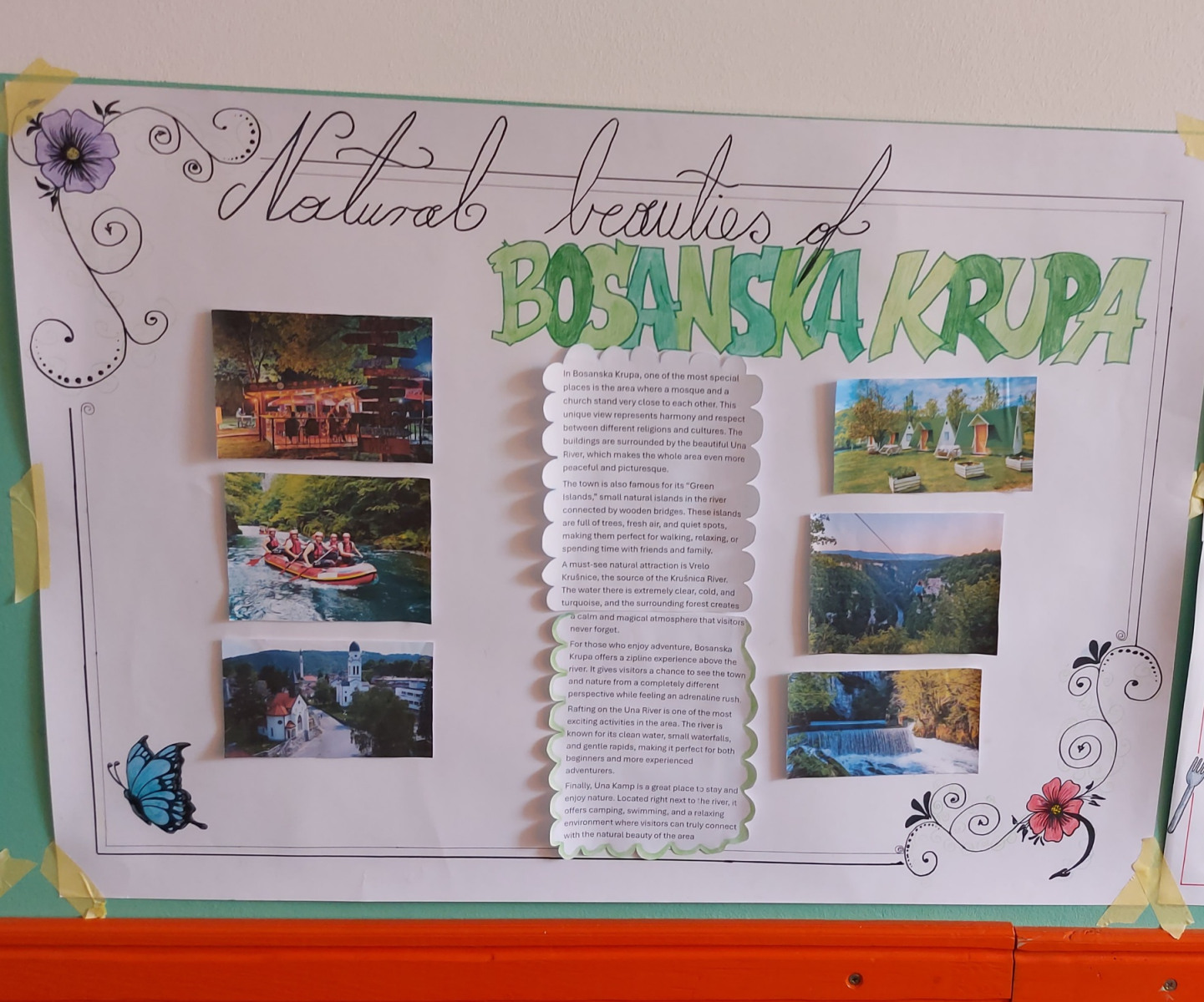 Uz stručno vođenje profesorice engleskog jezika Azre Hodžić, učenici su tokom tri nastavna časa vrijedno radili na izradi svojih turističkih mapa, koje predstavljaju svojevrsne smjernice za turiste koji posjete naš grad. Kroz ovaj projekat imali su priliku unaprijediti svoje znanje engleskog jezika, ali i razvijati kreativnost, timski rad i istraživačke vještine.